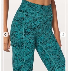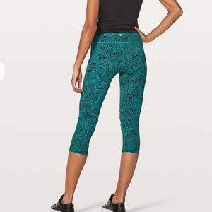 Lululemon In Movement crops in Kitakami Spirit Green Black. Worn only once, in new condition. Gentle washed and line dried. See pictures for more info. Will come with a Lululemon shopping bag.