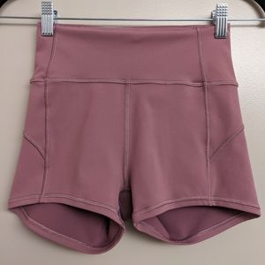 Lululemon Lycra Fibre High-Waisted In Movement Shorts in Mauve. Size 4. Excellent, like new condition.