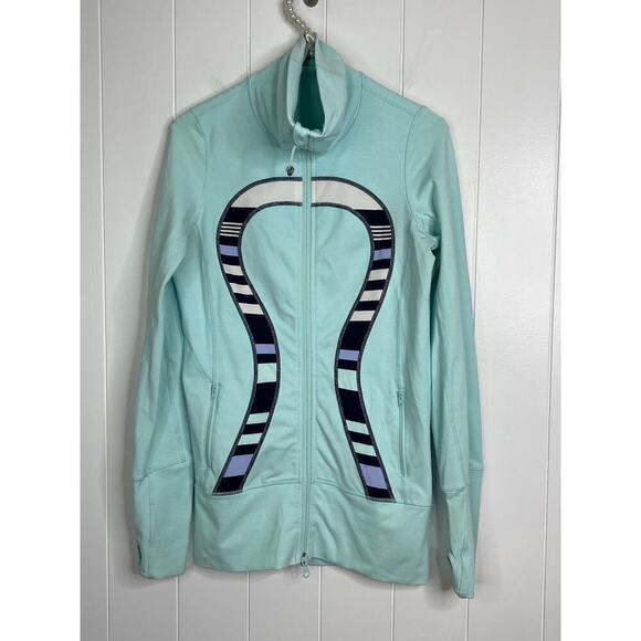 Lululemon In Stride Jacket Aquamarine Discovery Stripe Yoga Running Size 4