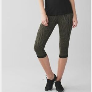 Lululemon In The Flow Crop II Heathered Fatigue Green chevron size 6