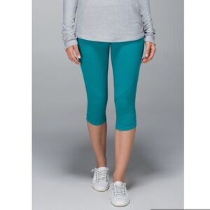 Lululemon In The Flow Crop II Heathered Real Teal Cropped leggings