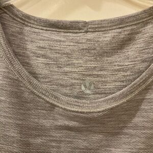 This Lululemon In The Flow Tank Dress is a versatile addition to any wardrobe. The dress is a heathered gray color with ruched sides and a scoop neck. It is sleeveless and has a pullover closure, making it easy to wear and style.