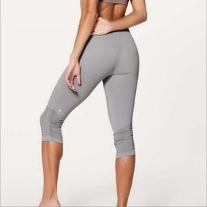 Lululemon In The Flow rusched capri seamless leggings in light gray