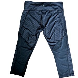 Lululemon InStride Crop Leggings Black Pinstripe Mesh Panel Size 12