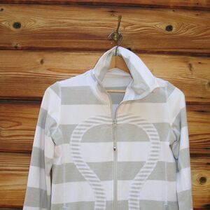 Lululemon In Stride Jacket Brushed White Silver Spoon Wide Bold Multi Stripe