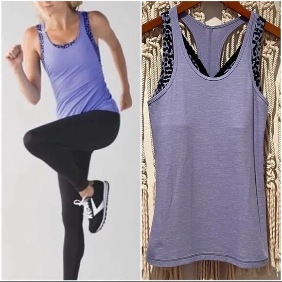 Lululemon Inspiration Tank SZ 2 Purple & Black Built in Bra Racerback Yoga Top