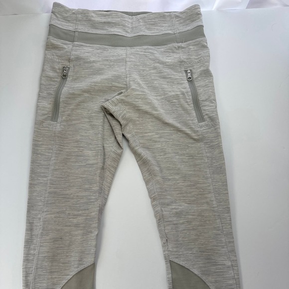 Lululemon ~Inspire Tight 2 Silver/white full length leggings pockets Size 4 #048
