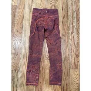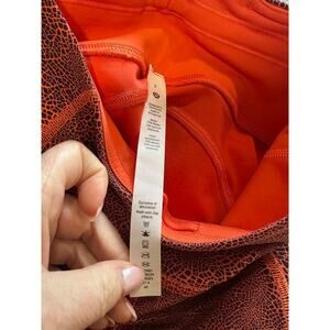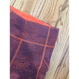 Orange/navy blue. Side pockets. Inseam is 23 inches.