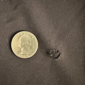 There is some pilling at the waistband as well as a small hole in the left knee that goes through the outer layer, but not the inner layer (see photos). Size 4.