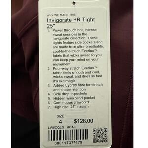 Lululemon Invigorate High-rise Leggings 25 inch Women Size 4 W5CQLS In HCAS NWT