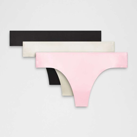 Lululemon InvisiWear Mid-Rise Thong Underwear 3 Pack Black/Bone/Pink Organza M