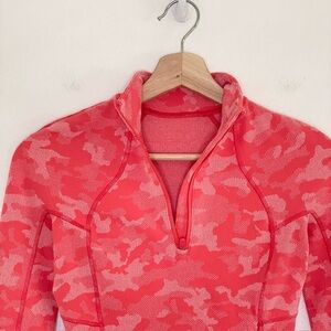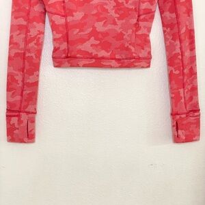 Lululemon Its Rulu Run Cropped Half Zip Heritage Camo Jacquard Pale Raspberry Pink Mist, Size 0. Style W3GI1S