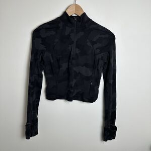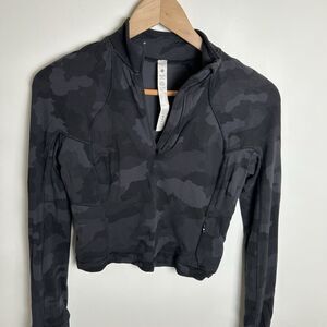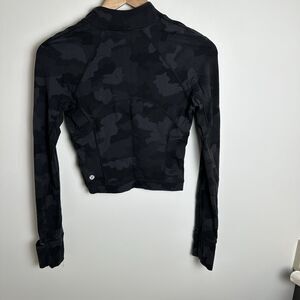 Lululemon Its Rulu Run Cropped Half-Zip Size 4 Camo Deep Coal Multi long sleeve