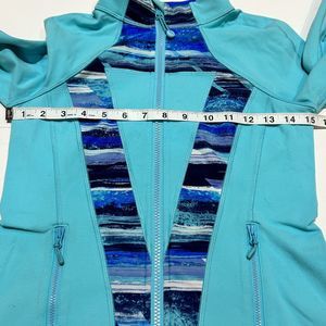 Lululemon Ivivva Perfect Your Practice Girls 12/14 Colorful Full Zip Blue Gym