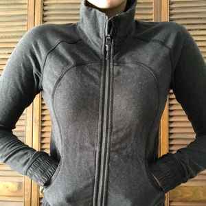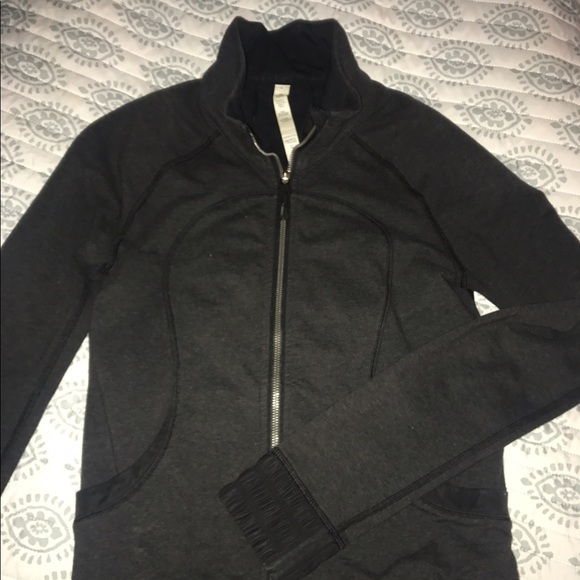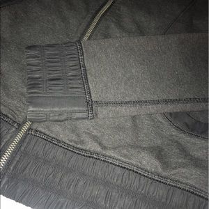 Charcoal grey lulu lemon jacket! Super cute ruffle detail on the waist and bottom of sleeves, collar neck, and mesh like back (not see through, just very light weight material.) No longer sold in stores and barely been worn. Open to offers