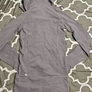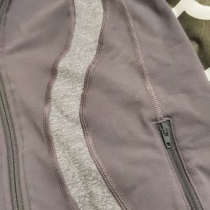 Longer jacket that goes past your but. No pilling. It has that slight sign of wear that lulu clothes get where the fabric isn't completely smooth anymore if you look at it closely. I tried to take close ups with my camera. It's most notable under the armpits, but isn't easily seen as a whole. Lululemon size 2.