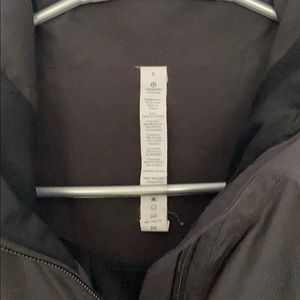 Black lululemon jacket, hardly worn! Size six. I’m normally a medium for things and this fits perfectly. Pockets have zippers. Wrists have thumb holes. Great condition, like new!