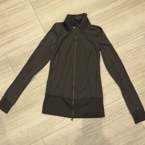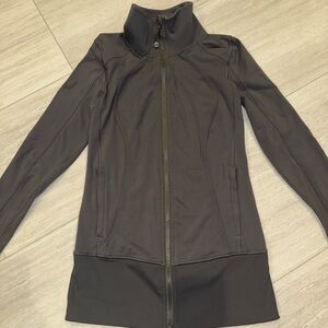 Lululemon dark gray zip jacket. Luon material, soft and lightweight. This is an older jacket, and I am unsure of the style name. It is still in very good condition: no stains, holes, flaws. Minor signs of wear only.