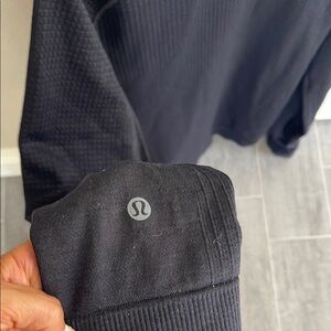Lululemon Stylish black jacket with a textured design. Features a full zip and pockets.