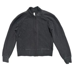 Lululemon Jacket Womens Size 4 On Repeat Bomber Black Full Zip Ribbed Crop Comfy