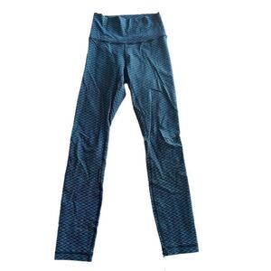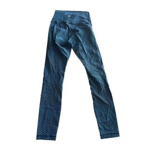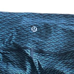 High Times pant from Lululemon in the print Score Jacquard Black Indian Ocean. Black and teal blue print.