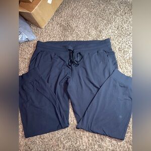 The Lululemon Jogger Pants in size 20 are a versatile and stylish addition to any man's wardrobe. With a solid black color and a tapered leg style, these pants are perfect for a variety of activities and occasions. The drawstring closure and machine washable fabric make them easy to wear and care for, while the Lululemon brand ensures quality and comfort. Whether you're traveling, working out, or simply lounging around, these jogger pants provide a perfect fit and a classic athleisure style.