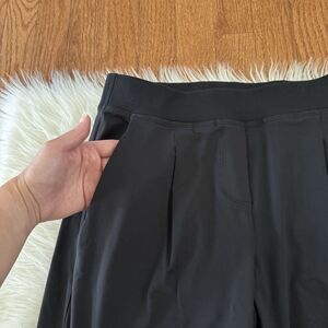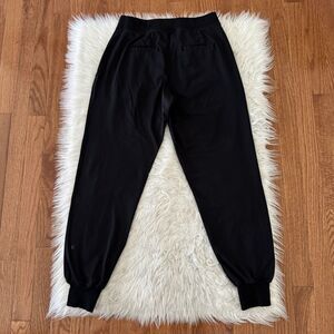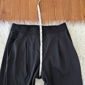 Lululemon Jogger Pants Womens Size 6 Black High Rise Pleated Athleisure Yoga. These no longer have the size dot but they fit a womens size 4/6 the best (I wear a size 6 in lululemon pants and these fit perfectly). See pics for measurements. Full length. Logo on back of leg. Has pockets and a few pleats in the front. Super stretchy and comfortable. Feels similar to align material. From a smoke free/pet free home