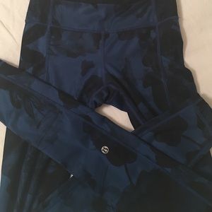 Lululemon Jumbo Inky Floral Speed Tights sz 2. Color: ink/Black. Features a zipper in the back- at the top waistband. Slits that create "Pockets" on each side of the leg- High thigh. These have only been worn once, maybe 2x. Looking to size up! This is my favorite pattern!!