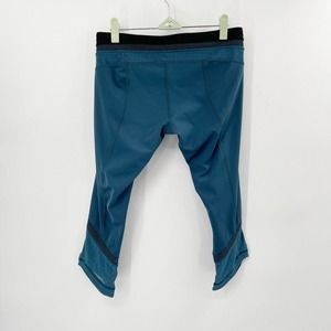 Lululemon Just Breathe Cropped Leggings Teal Size 8 Mesh Trim Yoga Athletic Dots