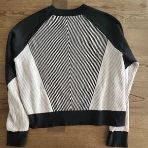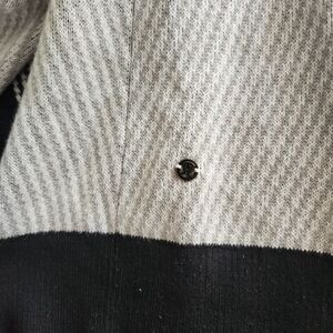 Stylish black and gray striped sweater. Perfect for any occasion.