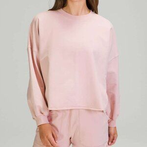 Lululemon LA Oversized Boxy Crew Sweatshirt Size XL/XXL Porcelain Pink Raw Hem