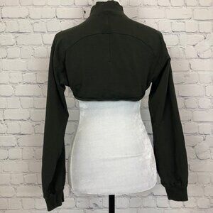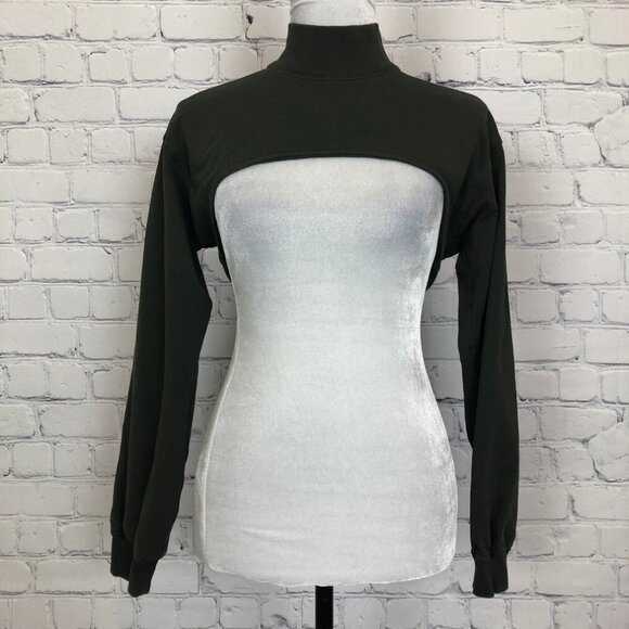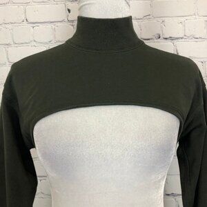 Dark olive green cropped mock neck top. Size tag has been removed, however this is most likely a 2 or 4. Please refer to measurements.