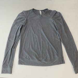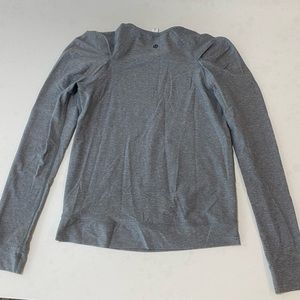 Lululemon Lab City Pullover in heathered slate. Adorable puff shoulder, vary worn, no pilling, sweat wicking material. Excellent condition.