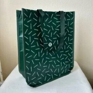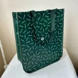 Lululemon Large Tote Bag Green and White Green Handles Snap Closure Classic Logo