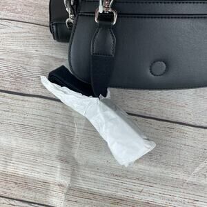 The Lululemon Leather Alternative Mini Bag Purse with Strap is a stylish and versatile accessory for women. This rectangular purse features a convenient magnetic closure and a black leather crossbody strap for easy carrying. The black exterior, adorned with a zipper accent, exudes a modern and sleek look, perfect for everyday use. The adjustable strap adds practicality to the purse, making it suitable for various occasions. The Lululemon brand ensures quality craftsmanship, and the silver hardware adds a touch of sophistication to this fashionable mini bag.