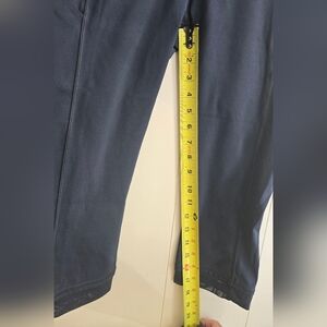 Experience ultimate comfort and support with these blue high-rise leggings from lululemon athletica. Crafted from a stretchy athletic material, they offer a snug fit and extend to mid-calf length, perfect for any workout. The contrasting royal blue waistband adds a stylish touch to these versatile leggings.