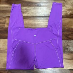 Lululemon Align high rise leggings 31” with pockets in the color moonlit magenta - small stain as pictured and some pilling on the back pictured.