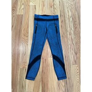 EUC Lululemon Leggings Size 4. Front zippered pockets. Mesh detail. Mid rise. Inseam is 24.5 inches.