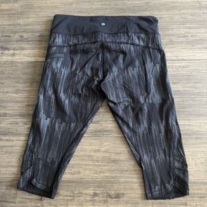 Lululemon Leggings Capri Size 10 Black Gray Dark Texture Pattern EUC