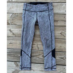 Lululemon Leggings Pace Rival Crop Power Luxtreme Spray black white Size 6