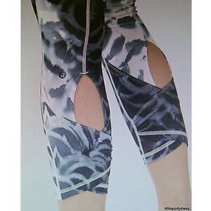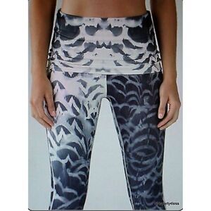 Keywords: Lululemon, black leggings, yoga pants, dance wear, high-rise, plume print, breathable fabric, activewear, women's leggings, size 6, pre-owned, comfortable leggings, stylish activewear, cut-out design, pretty plume pattern.