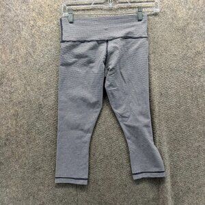Lululemon Leggings Women 4 White Blue Wunder Under Crop Hi-Rise Stripe Full On