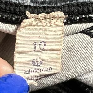 Logos/Markings: Lululemon reflective logo on lower leg; interior size dot "10"; worn size tab showing "10" and lululemon branding