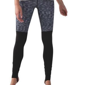 Notes: Style name not listed on tags; classic Lululemon stirrup legging design with contrast panels