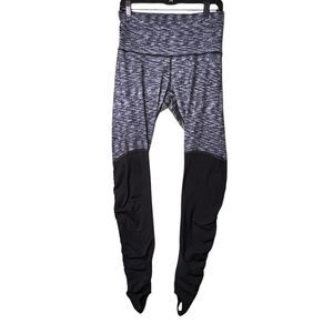 Lululemon Leggings Womens 10 Black Gray Heathered Stirrup High Rise Yoga Ruched