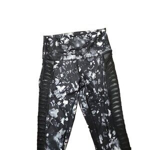 Lululemon Leggings Womens 4 Black White Capri Mesh Side Ruched Gym Yoga