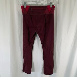 Lululemon Leggings Women's 4 Dark Red Zip Pocket Pull On Mid Rise 21.5" Inseam