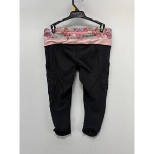 Lululemon Leggings Women's 6 Black Pink Floral Waist Band Cropped Capri Pants