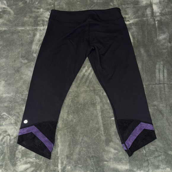 Lululemon Leggings Womens 8 Black Purple High Waist Performance Logo Cropped