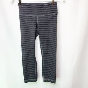 Lululemon Leggings Womens 4 Gray Black Striped Pull On Stretch Cropped Compressi